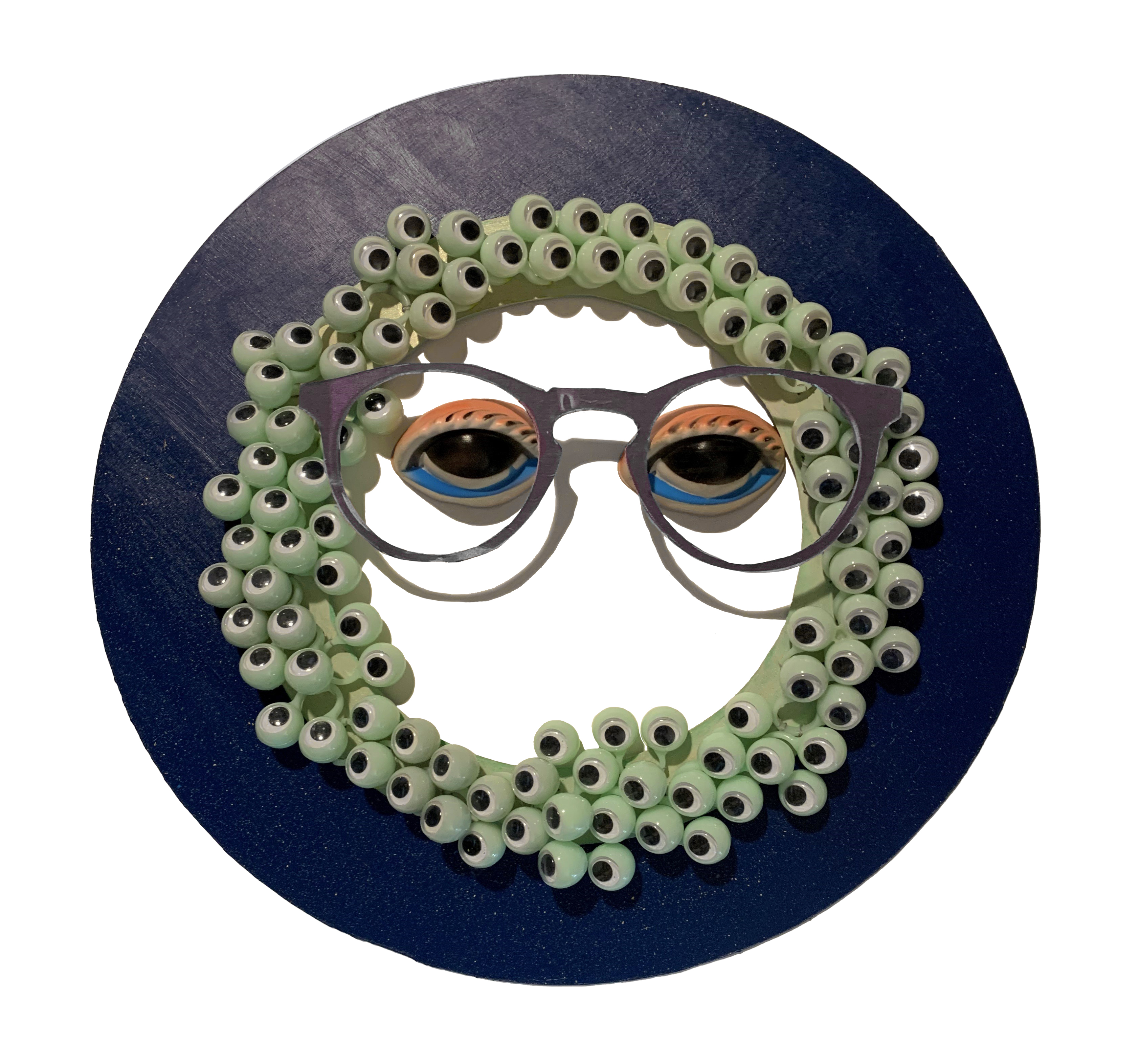 Image: Audrey Zeidman, Insomniac Dream Lover, 2023, Plastic eyes and painted board