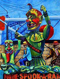 Image Credit: Christopher Spinelli, This Way to the Spookarama, 2021, acrylic paint, 48” x 36”