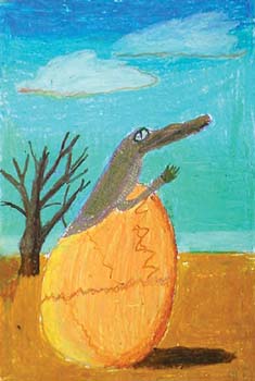 The artwork before you was created in several of the Parks Department's 36 recreation centers, where children enjoy a free program of arts, athletics, and academics, weekdays from 3:00 to 6:00 p.m. The works were made on canvas and on computer, of construction paper and fabric. You can see art from Far Rockaway and Harlem. Our studios are computer labs, multi-purpose rooms, and parks. Out of this variety emerges a picture of what New York City children observe and imagine when they look at their worlds.