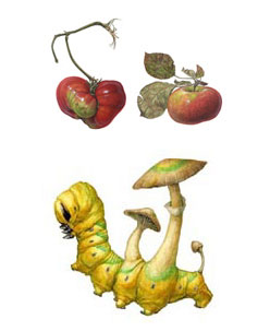 A Window on Nature: Art of Asuka Hishiki exhibits over 35 watercolors illustrating a poetic and painstakingly detailed observation of plants and insects. Hishiki’s paintings of vegetables from New York City’s celebrated Greenmarkets–most notably her heirloom tomatoes–and her imaginative series of plant–like insect mutations are influenced by Charles Darwin and others who advanced the scientific documentation of the evolution of species, as well as her fascination with the work of 18th century naturalist and scientific illustrator Maria Sibylla Merian.