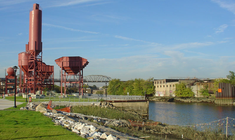 A little ways upstream from Hunts Point Riverside Park stood a concrete plant which operated from the 1940s through 1987. After closing, the land was left abandoned for years before we acquired it in 2000 with the help of local advocates.