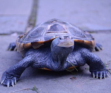 Unlike sea turtles, which mainly live in the water and tortoises that prefer to stay on dry land, terrapins are adapted to aquatic and terrestrial environments — both water and land. They are actually the only turtle species that live in the brackish waters (mix of saltwater and freshwater) of salt marshes. Diamondback terrapins can be seen swimming in the water or sunbathing on shores and wooden pilings at Marine Park. They can be recognized by their distinctive shell and skin patterns. Learn more about how we're protecting diamondback terrapins