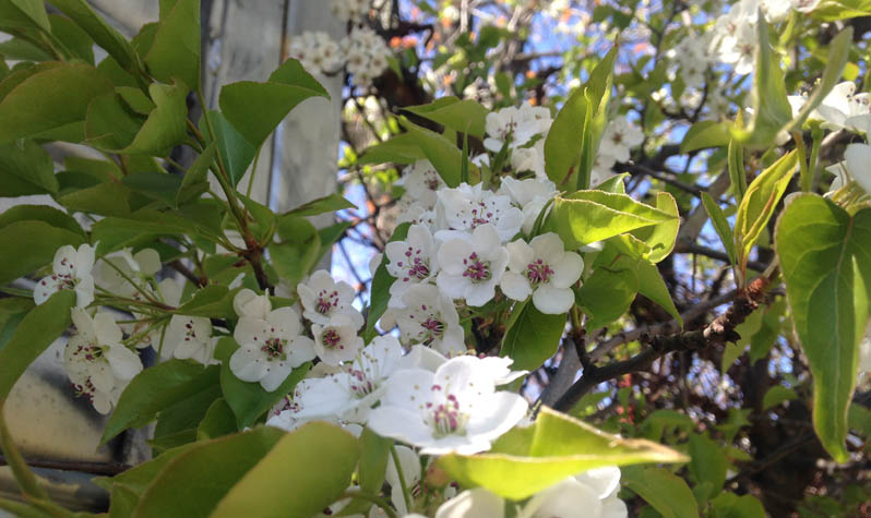 Callery pears are commonly called flowering pear trees. They bloom clusters of tiny, snow-white flowers and can sometimes make the trees appear to have "fallen snow" when the petals drop. Each flower has five petals. The leaves are glossy on the top and slightly paler below. Our city's most famous Callery pear tree is the 9/11 Survivor Tree. The tree was recovered from Ground Zero in 2001 and rehabilitated in Van Cortlandt Park before returning to the 9/11 Memorial site in 2010. Find Callery pear trees near you on our new NYC Street Tree Map