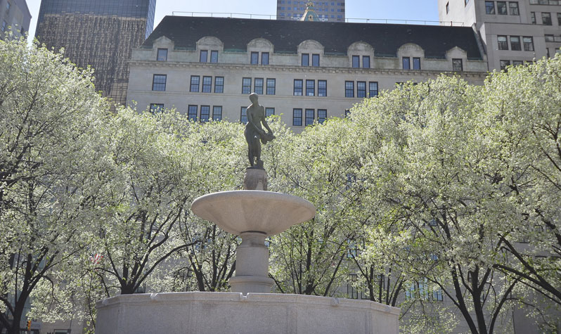 Callery pear trees at the Pulitzer Fountain at Grand Army Plaza, in Manhattan. (Photo by Malcolm Pinckney/NYC Parks)