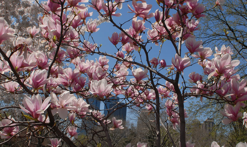 Saucer magnolias in Central Park, Manhattan. (Photo by Malcolm Pinckney/NYC Parks)