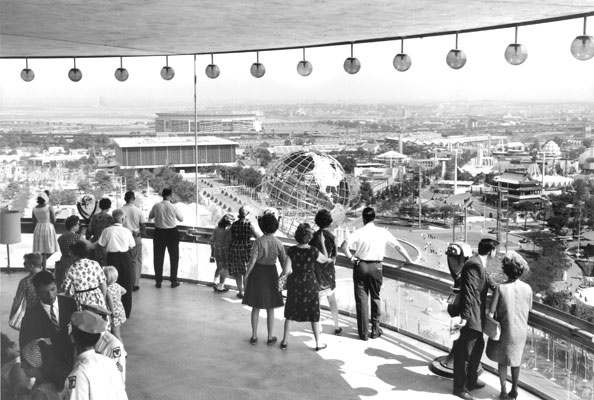 Visitors to the World's Fair could ascend to the two observation decks of the New York State Pavilion and enjoy a 360 degree view of the fair below them.