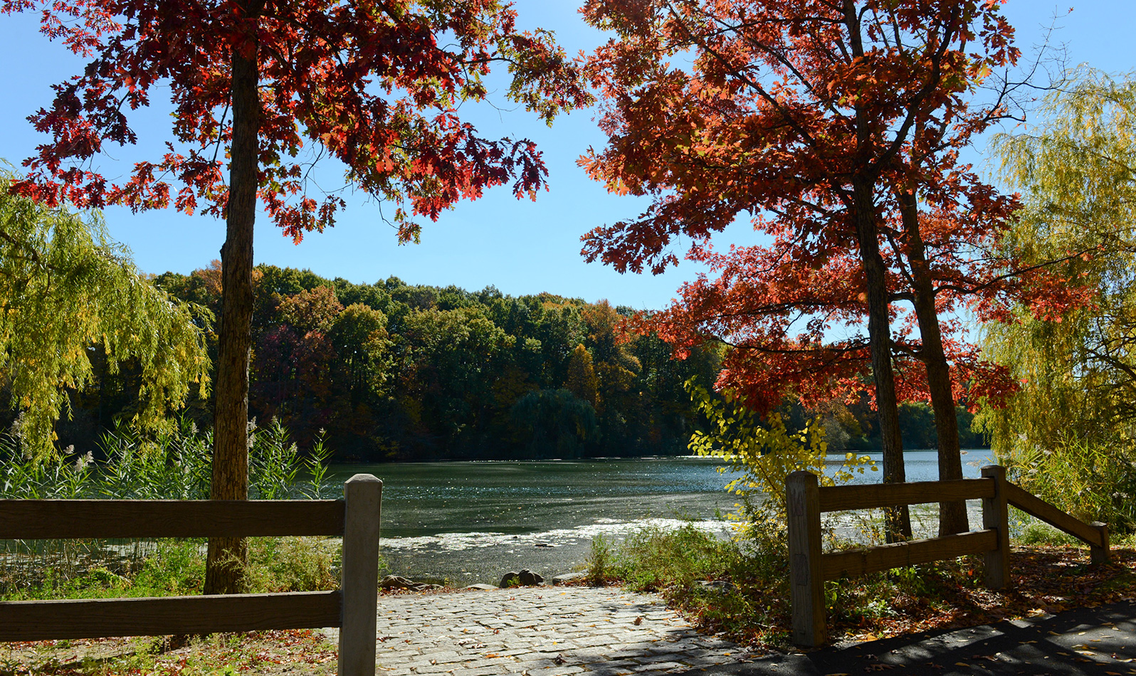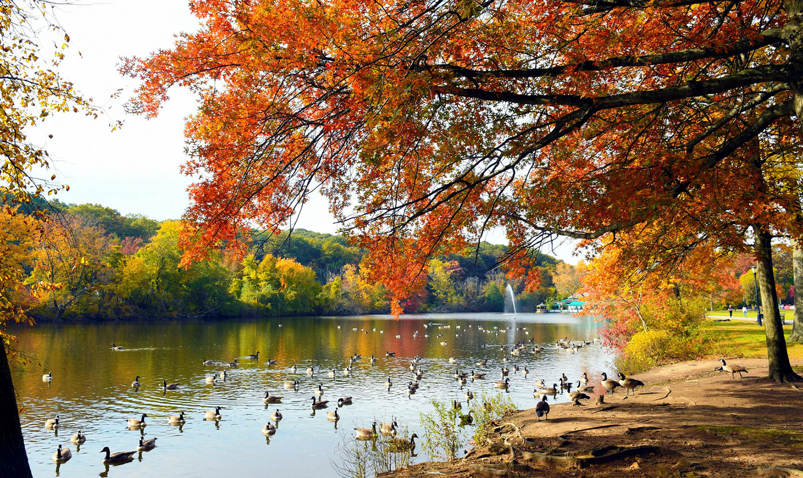 Explore the vibrant fall colors of Prospect Park! Start out from Peninsula to see the bright red leaves of the horsechestnut trees. Then, stroll along the picture-worthy views of the lakeside to Lookout Hill, one of the highest points in Brooklyn, for a panoramic view of the park's kaleidoscope of fall colors. View a map of Prospect Park