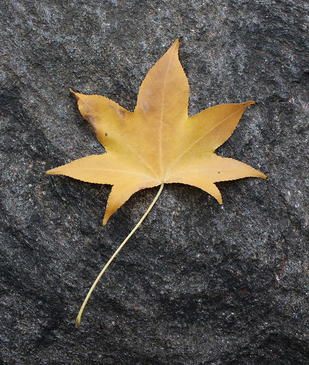Another leaf that could be mistaken for a maple is the sweetgum (Liquidambar styraciflua). But sweetgum leaves are distinctly star-shaped and are often surrounded by their easy-to-recognize fruit that looks like spike balls. The leaves of sweetgum trees usually have five pointed lobes, and occasionally more.
