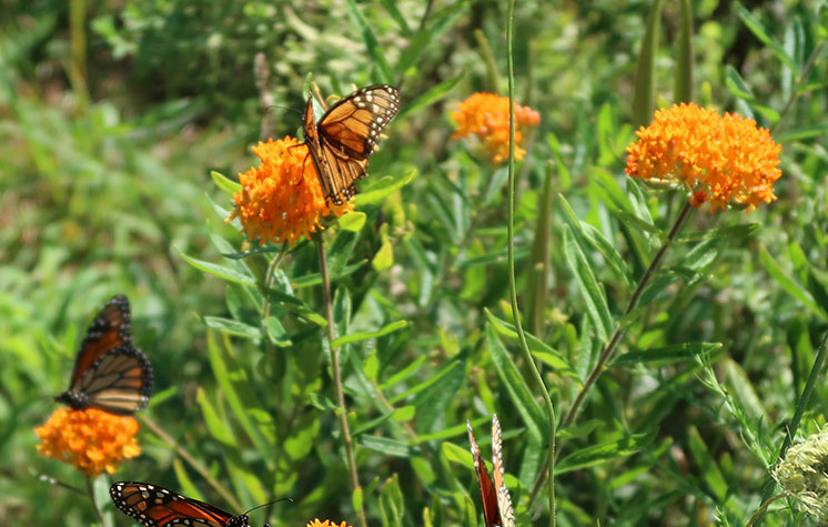 To provide pollen and nectar for pollinators, select several native plant species that flower at various times, so that you have plants flowering throughout the growing season. Select plants with different bloom sizes, shapes, and colors, as well as varying heights and growth habits. It is also important to include larval host plants for the caterpillars of butterflies and moths. Leaves are the primary source of caterpillar food, whereas butterflies need nectar sources.