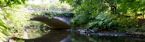 At this spot, you can contemplate the many years of engineering work that first tamed and later restored the Bronx River. Enjoy the masonry work of the retaining wall and the calm river waters on the east side of the Bronx River Island.