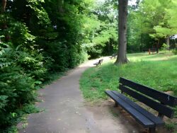 In January 1935, the City of New York acquired this property by condemnation. Included in the acquisition were the lands that would eventually become the Henry Hudson Parkway. Two years later, in September, Parks assumed jurisdiction over the Hackett Park property. The following month, Parks Commissioner and Chairman of the Triborough Bridge and Tunnel Authority Robert Moses (1888-1981) completed the Henry Hudson Parkway. In 1955, the City Council named the property Frank S. Hackett Park. However, the park was not dedicated until May 1956. Today, this hilly park features winding, lighted paths that traverse lush vegetation. The park’s trees species include honey locust, sweet gum, red maple, oak, and hickory. The center of the park features both a dog run and plaque in honor of the property’s namesake.