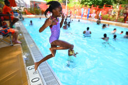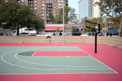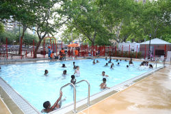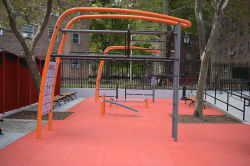 This playground, as well as the adjacent Abraham Lincoln Houses, is named for the sixteenth president of the United States, Abraham Lincoln (1809-1865). The playground features a basketball court, an adult fitness area, a mini pool with an ADA lift, multigenerational play areas, and spray showers.