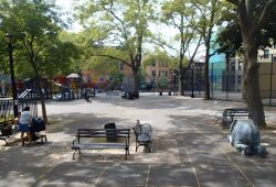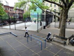 It's quiet uptown in this peaceful playground named after an American founding father and latter-day Broadway star. The playground features space for handball and full-court basketball, and a play area in the shadow of an 80-foot inspirational mural called Following in the Footsteps of Alexander Hamilton.