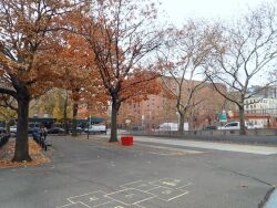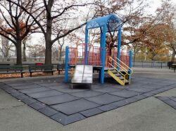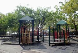 This playground, part of the larger Harlem River Park complex, is named for pioneering community advocate Alice Kornegay, who devoted her life to local social institutions. The asphalt lot includes modular play equipment for children and toddlers, a camel-shaped climbing feature, and swings, along with copious seating and mature shade trees.