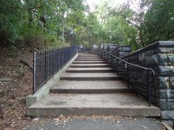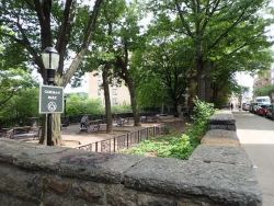 This terrace-like park is worth the climb! Gorman Park is located on a steep hill from its base on Broadway to its pinnacle on Wadsworth Terrace. Visitors can enjoy numerous sitting areas, and can look out from the Wadsworth Terrace entrance to see an expansive view of Washington Heights. The wide descending stone staircase leads out to Broadway.