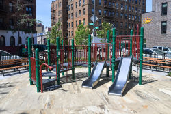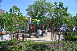 The site was rebuilt in 2022 with new play equipment, game tables, and green space for respite and contemplation.