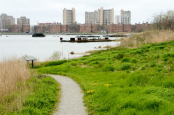 Largely bounded by Gravesend Bay, Calvert Vaux Park, which was largely created out of sand, soil and rock excavated for the construction of the Verazanno-Narrows Bridge, not only offers water views and glimpses of the winged wildlife naturally attracted to such an ideal setting, but also a playground, a main entry rain garden, two synthetic turf fields, basketball courts, bocce courts, six baseball diamonds, a soccer field and a newly restored waterfront.