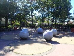 This community park contains two large grass softball fields, resurfaced basketball and handball courts, and a Gothic-style playground designed in the style of a European fairytale.