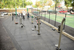 The playground itself is named for Cedar Avenue, which is adjacent to the site. The playground includes a play area, basketball courts, a spray shower, and adult exercise equipment.