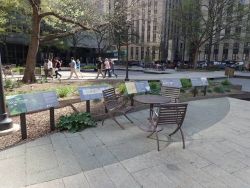 Located on Leonard Street between Centre and Lafayette Streets, this park occupies the eighteenth century site of Collect Pond. The pond was a large, sixty-foot deep pool fed by an underground spring. The waters derived their name from seventeenth century Dutch settlers, who called it “kolch” meaning “small body of water”. Following the English capture of New Amsterdam (1664), the name was corrupted to “collect.” Throughout the seventeenth and eighteenth centuries, Collect Pond was a favorite spot for picnics and ice-skating. In 1796, John Fitch (1743-1798) launched one of the first experimental steamboats on the waters. During this time, the pond was still clean enough to use for the area’s drinking water. By the early nineteenth century, however, New York City had transformed the sparkling waters into a communal open sewer. Disgusted, local authorities initiated a project to fill the sewer with earth from an adjacent hill. In 1805…