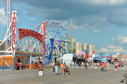 Coney Island offers an ideal summer respite from the hectic and steamy city. With nearly 3 miles of sandy beaches, Coney Island’s sunny skies and rolling waves make for the perfect getaway. If being active at the beach is more your idea of fun than just catching some rays, Coney Island also offers exciting recreation opportunities. With courts for beach volleyball, handball, and basketball as well as playgrounds and amusement rides, the beach and boardwalk can provide hours of entertainment.