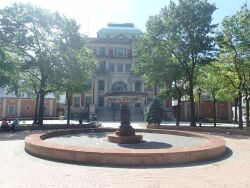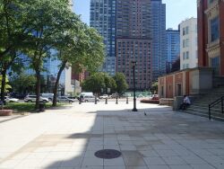 This park stands directly in front of the Queens County Court House in Long Island City. On October 22, 1872, the City of New York purchased the land on which the courthouse and Court Square Park stand. The first Long Island City courthouse, built two years later, was designed in the French Second Empire style by John Hathorne. In 1904, however, a worker repairing the roof accidentally set it ablaze, destroying the entire building. To replace the old courthouse, architect Peter Coco designed a neo-English Renaissance building, which opened in 1908. Ironically, Coco was indicted on corruption charges a year later, and was tried and convicted in the very courthouse he designed.