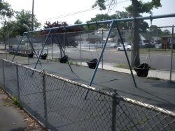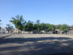 This playground next to P.S. 176 Cambria Heights features a large asphalt play area with spaces for handball and basketball nearby.