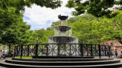 Fifty years after the cornerstone of the church building was laid, parishioners arranged for an inscription to be engraved on the base of the central lightpole in Father Demo Square. The site is assigned to Transportation and maintained by Parks. As in traditional town plans in Italy, Father Demo Square is a piazza - an open space surrounded by buildings and a gathering place for its community.
