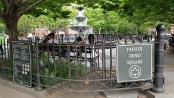 In 1935 Father Demo became Pompei’s pastor emeritus and superintendent of its parochial school. He died in 1936 in New York, and thousands of parishioners and friends, including Mayor Fiorello LaGuardia, paid their respects to their beloved pastor. In 1941 the public plaza southeast of Our Lady of Pompei was improved by the Manhattan Borough President and named in memory of Father Demo by local law. Attended by numerous Greenwich Village, Italian, and parish groups, the dedication ceremony included the singing of the national anthem, speeches by city authorities, a parade to Washington Square Park, and a memorial Mass at Pompei.
