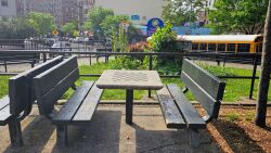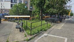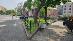 This landscaped triangle is bounded to the west by Martin Luther King Jr. Boulevard, also known as University Avenue. This street and neighborhood of University Heights to the north reference New York University (‘NYU’), which was once based in this area. Founded in 1831 in Greenwich Village, NYU later moved to the Bronx in 1894.