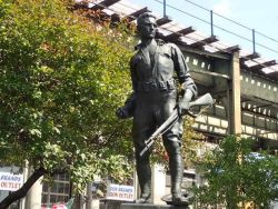 | Description: | Doughboy figure with integral plinth, on pedestal, tablet set in ground at proper right |
