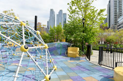 This park honors Bella Abzug (1920-1998), a feminist, civil rights activist, lawyer, and U.S. Representative who was a staunch supporter of civil liberties. The park, developed in tandem with the Metropolitan Transportation Authority 7 Train’s extension, is part of a six-block-long greenway in Hell’s Kitchen. This environmentally sustainable park was designed by Michael Van Valkenburgh Associates Inc. It includes a play area for children with a rope climbing feature, several sitting areas, and small plazas, and three innovative water fountains that can detect wind speeds and shut off during high winds. This once industrial area now provides a valued green space and a welcome refuge from the city.