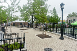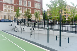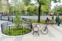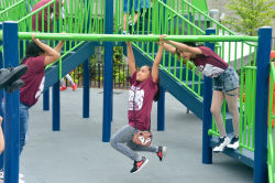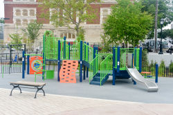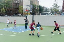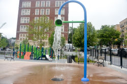 Hunts Point Playground, located in the neighborhood of the same name in the southwest Bronx, is named for Thomas Hunt, one of the first settlers to occupy the area in the 1670s. One can easily observe the point, protruding out into the East River, on any map of the Bronx. In 1874, New York City, which at the time included only Manhattan, began to annex sections of the Bronx. Hunts Point, originally part of West Farms in what was then lower Westchester County, became the newest part of New York City. The area underwent significant growth and development after the IRT subway line to Manhattan was built in 1904. Hunts Point is famous for the Hunts Point Terminal Market, the largest wholesale produce market in the United States.