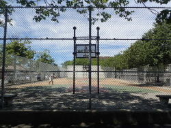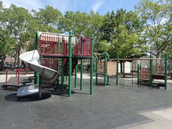 This playground honors former Dodger Jackie Robinson (1919-1972), the first African-American Major League Baseball player. On April 15, 1947, Robinson made history as the first Black to play in a Major League baseball game, paving the way for generations of black athletes to compete in America's national pastime.