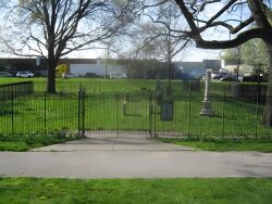 Although he worked as a physician, Drake was best known as a celebrated author of poems such as “The Culprit Fay” and “The American Flag.”   When he died of tuberculosis at the age of twenty-five on September 21, 1820, Drake was laid here to rest in the Hunt family burial ground north of the Grange.  Halleck (whose sculpture stands in Central Park) wrote the epitaph on Drake’s tombstone: “Green be the turf above thee; Friend of my better days; None knew thee but to love thee; Nor named thee but to praise.”  Drake’s widow compiled and published posthumously a collection of his poems in October 1835.