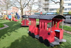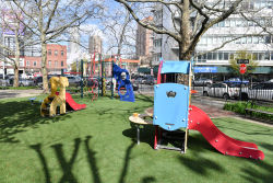 Choo choo! Old Hickory Playground is a delightful small park for younger kids. The playground features several pieces of ground-level play equipment, including slides and a couple of bright red train cars. Although the playground is located near the entrance to the Queens Midtown Tunnel, a low fence and several planting areas make the park feel safe, green, and peaceful.