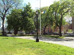 This park at the intersection of Courtlandt Avenue, East 161st, and East 162nd Streets in the Bronx neighborhood of Melrose takes its name from the old railroad station.