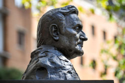 Tucker was born in Brooklyn in 1913, and he worked as a cantor before making his debut with New York’s Metropolitan Opera in 1945. Tucker enjoyed a thirty-year career with the organization, specializing in Italian operatic works. The monument was a gift of Tucker’s wife, Sarah, and was unveiled in 1979. A similar bust was unveiled in Tel Aviv, Israel that same year.