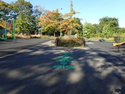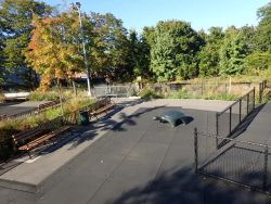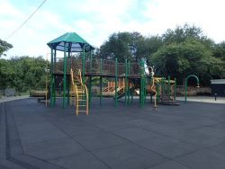 This welcoming and colorful playground located on quiet Aberdeen Street in Bushwick offers an out-of-the-way destination for children and families to discover. The play area features multiple play features, a swingset, a hopscotch area, a public restroom, and a whimsical turtle sculpture for climbing.