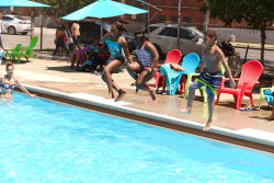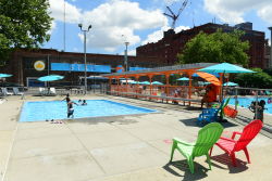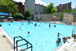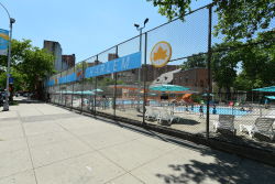 Sheltering Arms Pool provides a welcome urban oasis to beat the summer heat. This brightly colored pool has a throwback feel. The smaller wading pool and 3.5-foot deep pool offer Harlem residents a place to chill during the summer, and the cabana-style seating and vivid designs make this pool a destination.