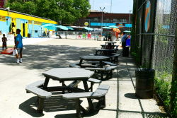 The park is named after The Sheltering Arms, an asylum that once existed at this site for children suffering the deepest poverty, and even when the pool is closed for the season, it remains a popular neighborhood destination. The playground features handball courts and play areas for younger and older children.