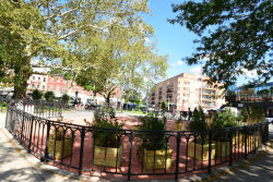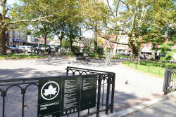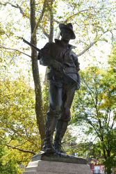 Since its founding in the 1930s, Tompkinsville Park has become an integral part of its community's landscape in Staten Island. This civic plaza is the heart of the neighborhood of Tompkinsville, and the park is often bustling with commuters and passersby. A fountain built in 2008 acts as the centerpiece of the park, and accessible benches, water fountains, and public bathrooms assist needy travelers. The park's most notable feature is The Hiker, a statue sculpted by Allen G. Newman that honors the local soldiers of the Spanish-American War.
