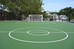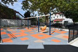 The playground has two levels which will be renovated in 2022. The lower level on Carpenter Avenue, will include two areas with new play equipment and a spray shower, in addition to an existing public restroom. The upper level, which abuts Matilda Avenue, will include two basketball courts and a painted junior soccer field with an additional entrance to increase safety. An ADA-accessible ramp now connects both levels. Formed in 2015, the Friends of Wakefield Playground provides additional programming and care for this site.