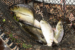 In July, you can watch juvenile alewife 'popping' in the Bronx River. This is a feeding behavior that involves a leap out of the water to capture insects as they emerge. Come fall, juvenile alewife leave their spawning grounds and join the adults out in the ocean.