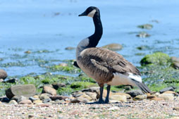 From late June into July, Canada geese begin changing out of their winter outfits, through a process called molting, where they shed and replace old and worn flight feathers. During this time, they are unable to sustain continuous flight, so you might see them biding their time at your local park. And if you don't see them, you'll likely hear them—Canada geese are very vocal. They honk when they are flying, or even just hanging out in the water, and on land.