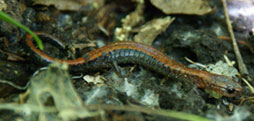 Red-backed salamanders breed from October to December. During this time, some breeding pairs can be spotted together. During the breeding season, males have more swollen snouts and longer legs than the females. Red-backed salamanders spend most of their time in damp areas beneath objects like rocks and logs, and in small underground burrows.