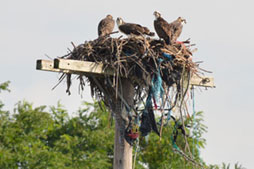 These fish-loving hawks spend most of their time near bodies of water, and generally build their nests along coastlines for easy access to their favorite food. They return to the same nest every year in the springtime to mate and nest, and if you walk through our large shorefront parks at the right time of year, you can usually see osprey pairs nesting in very tall trees and on utility poles.