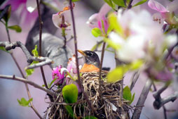 New York City is situated on what is known as the Atlantic Flyway, a migratory path that many eastern species of birds follow during spring and fall migration. As they follow the coast north, many birds look to our parks for food, water, and shelter. Grackles, robins, and red-winged blackbirds, among others, can be seen in the North Woods of Central Park gathering material for their nests. Learn more about birding at NYC Parks