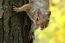 Before the cold weather arrives, eastern gray squirrels visit their favorite trees to gather food to put away for the winter. It’s the perfect time to see squirrels climbing up trees and scurrying around in leaves, looking for snacks to bury underground.