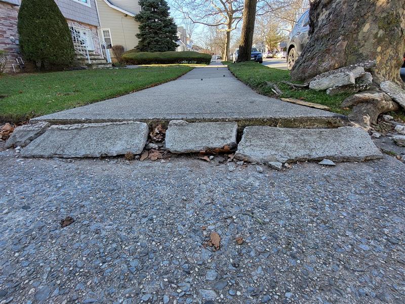 Parks’ sidewalk repair program can help repair severe sidewalk damage caused by root growth adjacent to one-, two, and three-family (NYC Tax Class 1) homes not used for commercial purposes and occupied by the owner only. Funding for this program is limited, and repairs are made based on a rating system that includes the severity of damage, amount of pedestrian traffic, and size and condition of the tree.